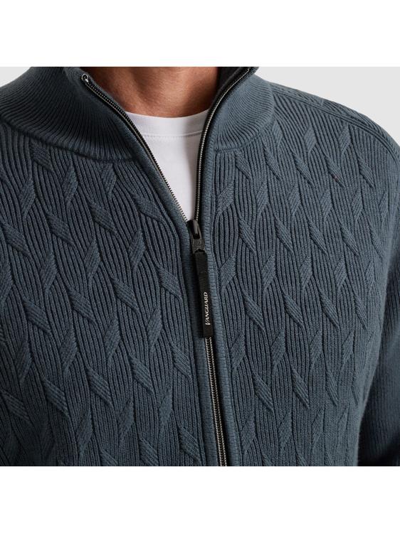 Dit gebreide vest van Vanguard toont een verfijnde donkergroene kleur met een strakke rits aan de voorzijde. De kabelgebreide textuur op het voorpand geeft het vest een klassieke uitstraling, terwijl de gladde mouwen en achterkant zorgen voor een moderne twist. Het vest beschikt over een staande kraag die een nette finish geeft. De materiaalsamenstelling biedt een comfortabele stretch die de hele dag meevalt zonder vorm te verliezen.