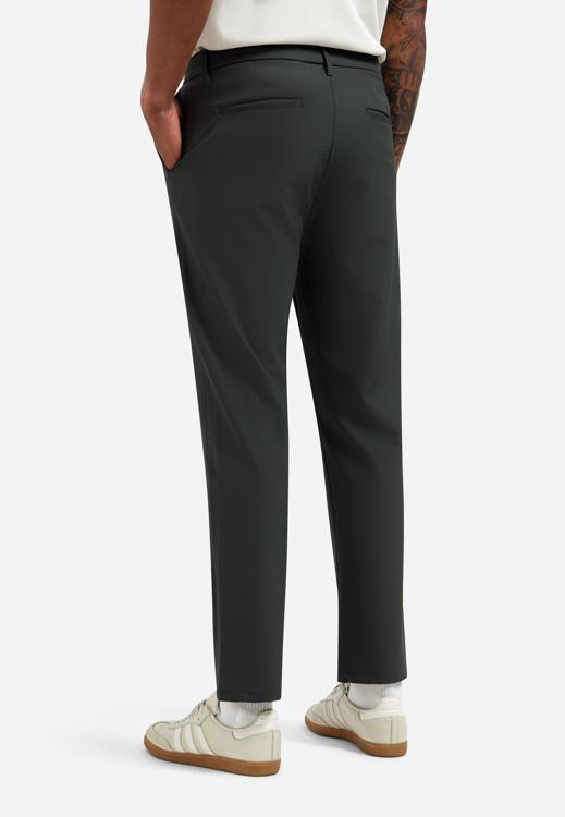 Deze groene heren broek van No Excess combineert een casual uitstraling met een verzorgde finish. De polyamide-elastane mix zorgt voor bewegingsvrijheid en vormvastheid tijdens drukke dagen. De rechte pijpen eindigen op enkelhoogte met een moderne, getailleerde pasvorm. Aan de voorkant zitten twee steekzakken verwerkt, terwijl de elastische tailleband met trekkoord zorgt voor optimaal draagcomfort. Het cleane design zonder opvallende details maakt deze groene broek veelzijdig inzetbaar voor verschillende gelegenheden.