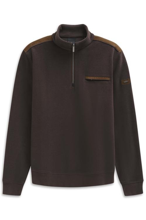 De Bugatti Sweater 8500-85050D is ontworpen voor comfort en stijl in de koudere maanden. Met een handige halve rits aan de voorzijde en een opstaande kraag biedt deze sweater een eigentijdse uitstraling. De lange mouwen en de opvallende schouderdetails in contrasterende texturen geven het item een unieke uitstraling.
