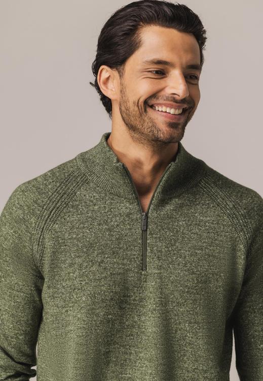 Deze groene State of Art Trui 13125090 biedt een comfortabele en veelzijdige toevoeging aan je wintergarderobe. Het item is voorzien van een hoge kraag met rits en lange mouwen, wat zorgt voor een tijdloze uitstraling. De subtiele textuur geeft de trui een unieke touch, perfect voor zowel informele als meer formele gelegenheden.
