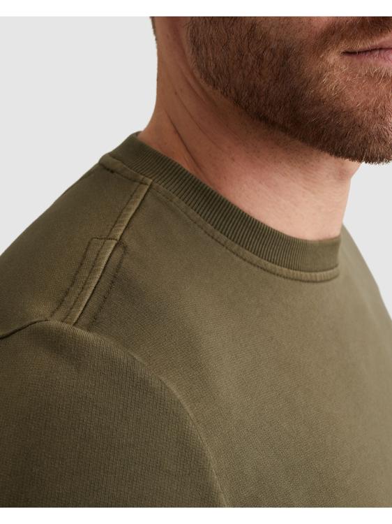 Deze groene trui heeft een ronde halsboord en een clean, stoer ontwerp. Op de linkerschouder zit een opgestikte sierpaneel met ritssluiting, dat zorgt voor een functionele look. De boorden aan hals, manchetten en zoom zijn geribd afgewerkt. Het materiaal voelt stevig aan en biedt voldoende bewegingsvrijheid. Een betrouwbare basis voor een casual outfit die geschikt is voor verschillende gelegenheden.