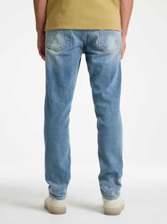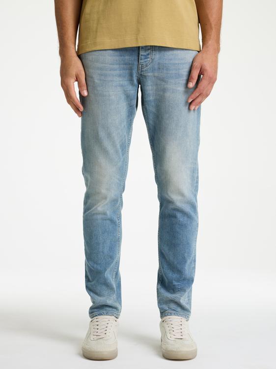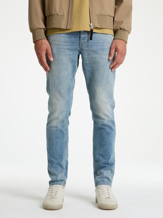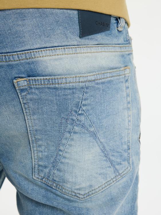 Een blauwe heren jeans met een lichte wassing die een gedragen look geeft. Deze Chasin broek heeft een regular fit met een rechte pijp en normale taillehoogte. De denim heeft steekzakken aan de voorzijde en contrasterende stiksels. De gulp sluit met knoopsluiting. De lichtblauwe wassing zorgt voor een casual uitstraling die geschikt is voor alle seizoenen.