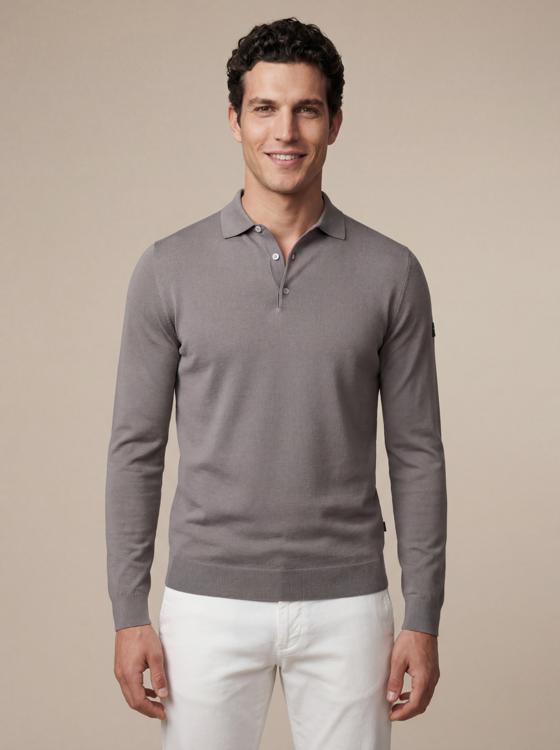 Deze longsleeve polo valt normaal en sluit comfortabel aan. Bij twijfel tussen twee maten kan een maat groter extra bewegingsvrijheid bieden. Combineer met een nette chino of donkere jeans voor een smart casual look die zowel zakelijk als tijdens weekenduitjes inzetbaar is. Door het zachte materiaal blijft de polo zijn vorm behouden en voelt het hele dag prettig aan. Het grijze kleurpalet maakt het eenvoudig te combineren met vrijwel elk onderdeelstuk uit de garderobe. Bekijk meer collecties van Cavallaro Napoli voor een complete smart casual outfit.
