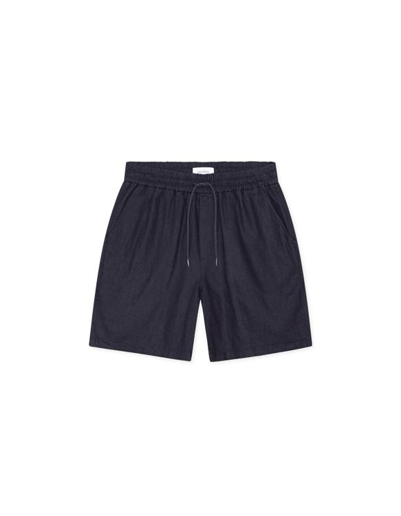Deze blauwe short van Les Deux combineert linnen en katoen voor een luchtig en soepel draaggevoel. Het relaxed model met elastische tailleband en verstelbaar koord zorgt voor een comfortabele pasvorm. De short heeft steekzakken aan de voorzijde en paspelzakken met knoopsluiting aan de achterzijde. Een subtiel merklabel op het been geeft het design een clean finish. De blauwgrijze kleur maakt de short veelzijdig inzetbaar voor verschillende zomerlooks.