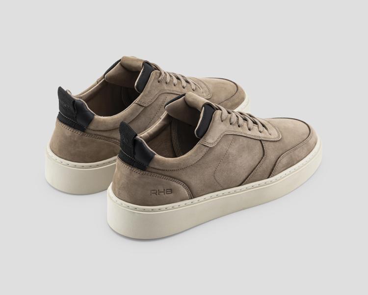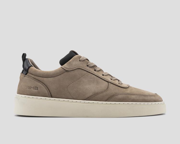 Deze taupe sneaker draag je perfect onder een donkere chino of nette jeans. Door de neutrale kleur past de schoen bij zowel aardse tinten als navy en grijs. Combineer met een fijngebreid trui of een smart casual colbert voor een verzorgde look. De suède afwerking geeft net dat beetje extra ten opzichte van standaard leren sneakers. Rehab staat bekend om eigentijdse modellen die zakelijk en casual moeiteloos combineren.