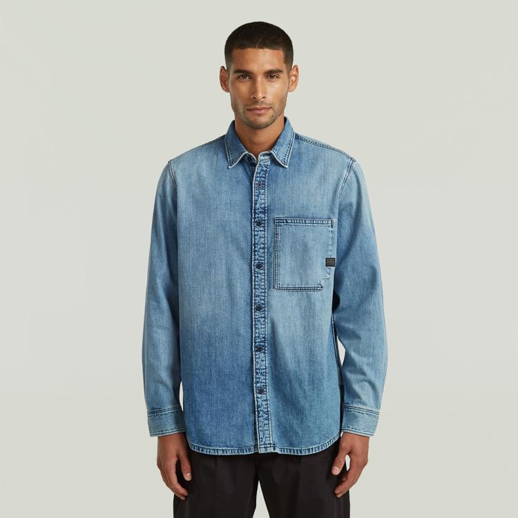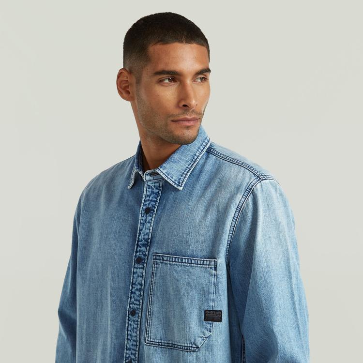 Dit blauwe denim overhemd van G-Star heeft een relaxed fit en is uitgevoerd in lichtblauw met een subtiele wassing. De klassieke kraag en doorlopende knoopsluiting aan de voorkant geven een clean uitstraling. Op de borstzijde zit een opgestikte zak met klein G-Star label. De afwerking is scherp, met contraststiknaden die het denim karakter extra benadrukken. De stof is volledig van katoen, wat het shirt luchtig en soepel maakt, ideaal voor zomerse dagen.