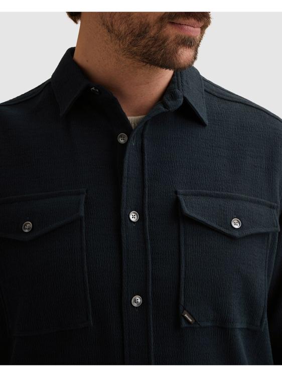 Dit blauwe overhemd van Vanguard heeft een robuust karakter met twee borstzakken met kleppen en drukknopen. De knoopsluiting loopt over de volledige voorzijde en de lange mouwen zijn afgewerkt met knoopbare manchetten. De klassieke kraag en het stevige materiaal geven dit heren overhemd een betrouwbare uitstraling. Het donkerblauwe kleurenpalet maakt dit shirt veelzijdig inzetbaar.