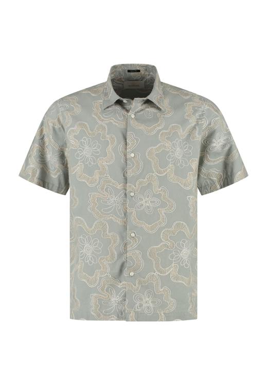 Dit groene overhemd van Dstrezzed voor heren heeft korte mouwen en een klassieke kraag. Het all-over paisleydessin in lichte tinten geeft het shirt een opvallend zomerkarakter. De knoopsluiting loopt door tot aan de boord. Het katoen zorgt voor een luchtig draagcomfort, ideaal wanneer de temperatuur stijgt. De relaxed fit geeft voldoende bewegingsvrijheid zonder slobberig te zitten. Het dessin maakt dit overhemd geschikt voor momenten waarop een standaard basic te braaf is.