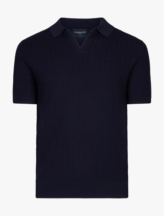 Draag deze blauwe polo onder een licht colbert voor een verzorgde smart casual look of combineer hem met een chino of nette jeans voor een relaxte uitstraling. De V-hals geeft net wat meer karakter dan een klassieke polokraag en past goed bij sneakers of nette schoenen. Door de zachte grip en goede ventilatie blijft het shirt prettig zitten, ook tijdens langere dagen. Bekijk de complete collectie Cavallaro Napoli voor meer veelzijdige basicsitems.