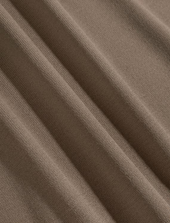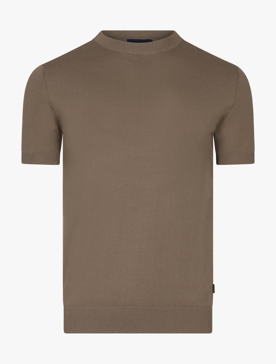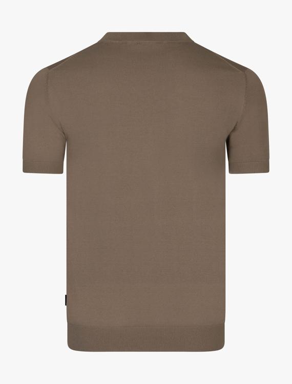 Dit bruine shirt met korte mouwen heeft een ronde hals en een strakke, gebreide structuur. De viscose en polyamide mix zorgt voor een zacht gevoel op de huid en een lichte glans die het geheel net iets chiquer maakt dan een gewoon katoenen shirt. De vlakke ribbels creëren een subtiele textuur zonder opvallend dessin. De droge afwerking van de halslijn en mouwen geeft het een clean uitstraling. Perfect voor de warmere maanden wanneer comfort en stijl hand in hand gaan.