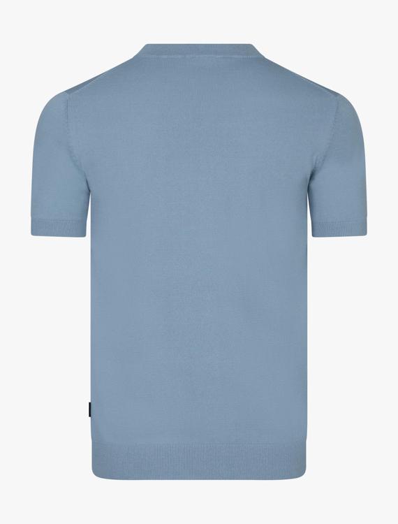 Dit blauwe gebreide shirt combineert de verfijning van knitwear met het gemak van een T-shirt. De korte mouwen en strakke ronde hals zorgen voor een gestroomlijnde look. Het fijngebreide materiaal biedt een soepele val en beweegt prettig mee door de dag. De lichtblauwe kleur past in elke garderobe en geeft net dat tikkeltje meer dan een standaard shirt. Een veelzijdig item voor de zomermaanden, geschikt voor verschillende gelegenheden.