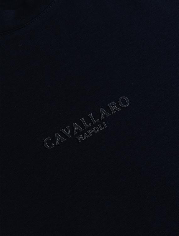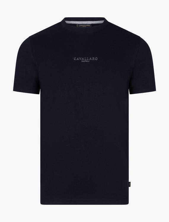 Dit blauwe shirt combineert katoen met een stretch toevoeging voor extra bewegingsvrijheid en een goede pasvorm die de hele dag comfortabel blijft. De ronde hals en korte mouwen maken het een veelzijdig basisstuk. Op de voorzijde staat het merknaam 'Cavallaro' subtiel geprint. De egale donkerblauwe kleur maakt het shirt makkelijk te combineren met verschillende broeken en jasjes. Het fijngebreide materiaal voelt zacht aan en heeft voldoende stretch voor een sportieve pasvorm die niet trekt of knelt.