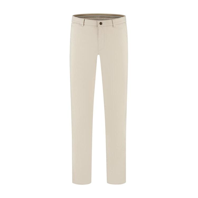 Deze beige chino van North84 heeft een strak, modern silhouet en een rechte pijp. De broek is uitgevoerd in een soepel katoen met een lichte stretch, wat zorgt voor bewegingsvrijheid en draagcomfort tijdens lange dagen. De broek heeft steekzakken aan de voorzijde en paspelzakken met knoopsluiting op de achterzijde. De taille sluit met een knoopsluiting en heeft riemlussen. De neutrale beige tint maakt het een veelzijdige basisbroek voor de zomergarderobe. North84 levert met dit model een eigentijdse pantalon die geschikt is voor verschillende draagmomenten.