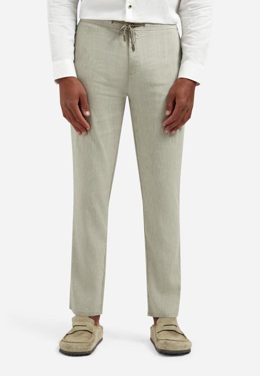 Deze lichte grijsbeige herenpantalon van No Excess valt direct op door zijn luchtige draag-gevoel en soepele bewegingsvrijheid. De stof ademt goed en heeft net genoeg stretch om de hele dag comfortabel te zitten. De taillband is voorzien van een trekkoord en de broek heeft zijzakken. Een veelzijdige linnen broek voor heren die makkelijk schakelt tussen doordeweeks en weekend.
