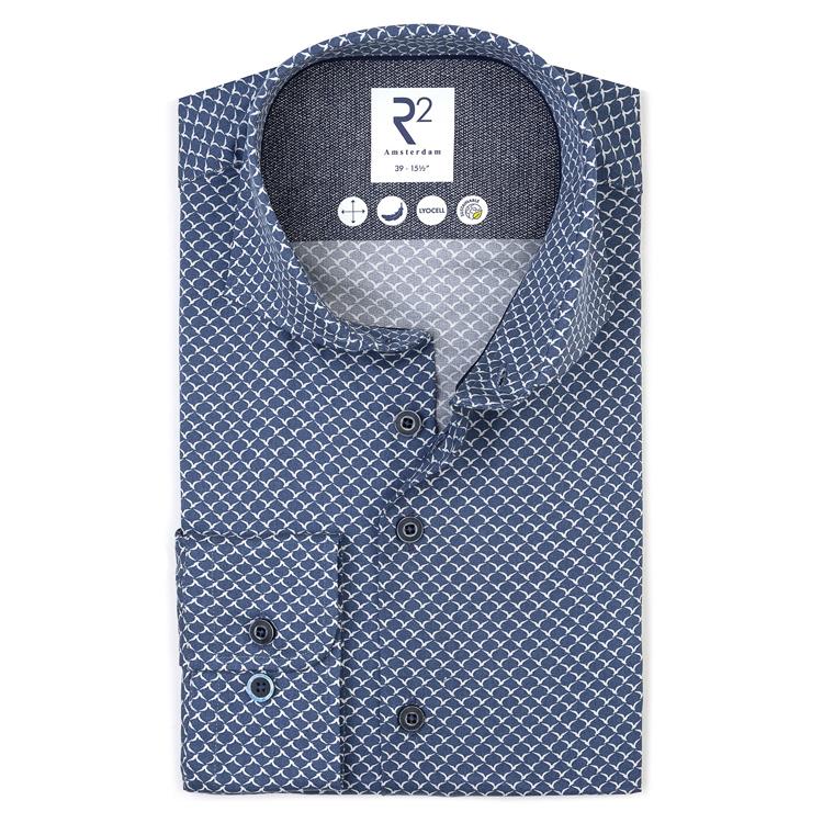 Blauw Overhemd R2 Amsterdam met Grafisch Dessin