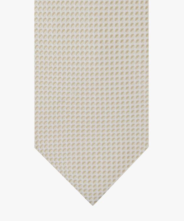 Een zandkleurige zijden stropdas van Profuomo met een subtiel, gestructureerd microdesssin over de volledige breedte. De verfijnde, herhalende patroonstructuur in zachte zand- en crèmetinten geeft het accessoire een rustige uitstraling met karakter. De klassieke puntvorm en de standaardlengte maken hem geschikt als nette herenaccessoire voor het zomerseizoen. Artikelnummer PPXA10050A.