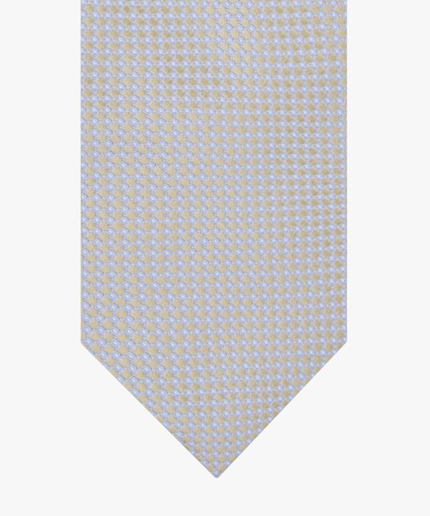 Een zandkleurige zijden stropdas van Profuomo met een fijn structuurdessin in lichtblauw en zand. De subtiele tweekleurige jacquardweving geeft de das een verfijnde textuur zonder opdringerig te zijn. De puntige tip en klassieke breedte maken deze herenstropdas breed inzetbaar, van een zakelijke vergadering tot een verzorgde gelegenheidsoutfit in de zomer. Een sterk herenaccessoire dat het verschil maakt.