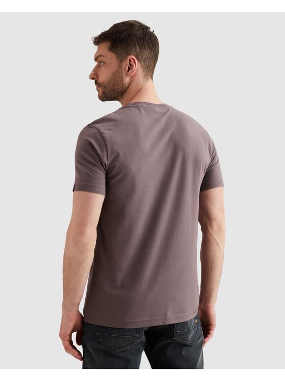Dit heren T-shirt van PME Legend heeft een strakke ronde hals en korte mouwen. Op de voorzijde staat de tekst "PME Legend American Classic" gedrukt in een toonvaste kleur op de gemêleerde mauve-bruine ondergrond. Het shirt heeft een rechte snit met een iets langere achterzijde en een klein PME Legend-label aan de zijnaad. Zomercollectie 2026.