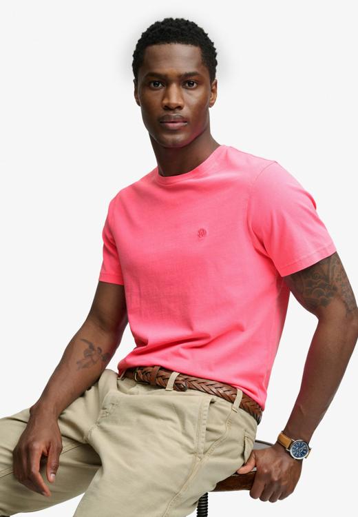 Dit roze heren T-shirt van Superdry is een clean en veelzijdig basis tee voor de zomer. Gemaakt van 100% katoen voelt het direct zacht aan op de huid en ademt goed bij warmte. Het shirt heeft een ronde hals en korte mouwen. Op de borst een klein geborduurd Superdry-logo, op de mouw een subtiel geweven label. Strak maar niet knellend, precies goed voor dagelijks gebruik.