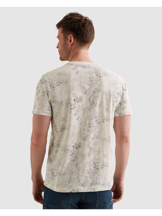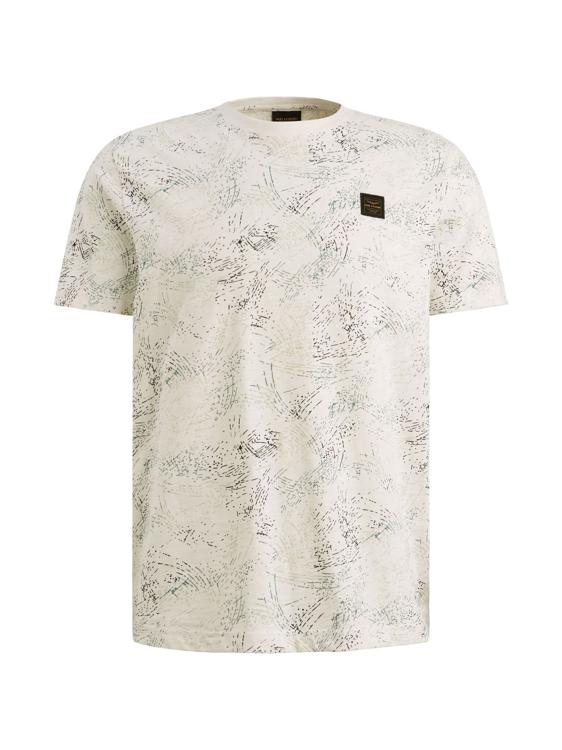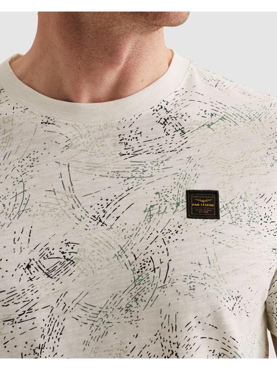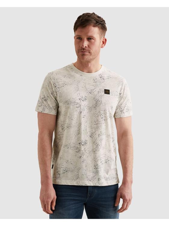 Dit heren T-shirt van PME Legend heeft een opvallend all-over grafisch dessin in donkere tinten op een gebroken witte ondergrond. Het print heeft een abstract, kratsig karakter dat het shirt direct karakter geeft. Op de borst zit een klein geweven PME Legend label. De ronde hals en rechte snit zorgen voor een clean en draagbaar resultaat. Een sterk zomershirt uit de collectie van 2026.